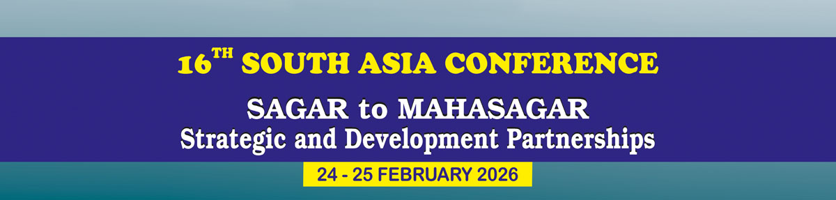 The 2026 South Asia Conference is being held on 24-25 February 2026 on the theme “Sagar to Mahasagar: Strategic and Development Partnership.” The conference aims to explore how India’s evolving maritime and regional frameworks. SAGAR (Security and Growth for All in the Region) and MAHASAGAR (Mutual and Holistic Advancement for Security and Growth Across Regions) can shape new pathways for cooperation, connectivity, and collective growth in South Asia and the broader Indian Ocean Region (IOR).