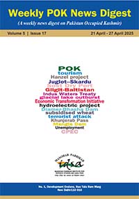 POK NEWS DIGEST is MP-IDSA's weekly newsletter comprising summaries of various developments, press releases and important statements made by leaders related to Pakistan Occupied Jammu and Kashmir (POJK), referred to as 'Azad' Kashmir and Gilgit-Baltistan by the Government of Pakistan. The POK NEWS DIGEST captures contemporary issues related to POK under the following categories: